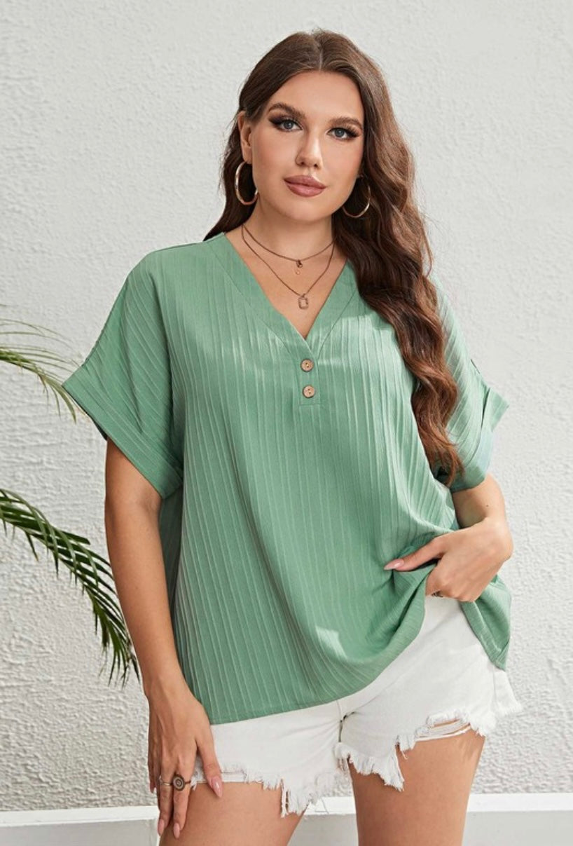Add some herbal flavor to your wardrobe with the Sage Me Tee! This playful shirt features a sage-colored v-neck and two-button design for a casual, yet stylish look. Perfect for those who want to spice up their style with a touch of sass.